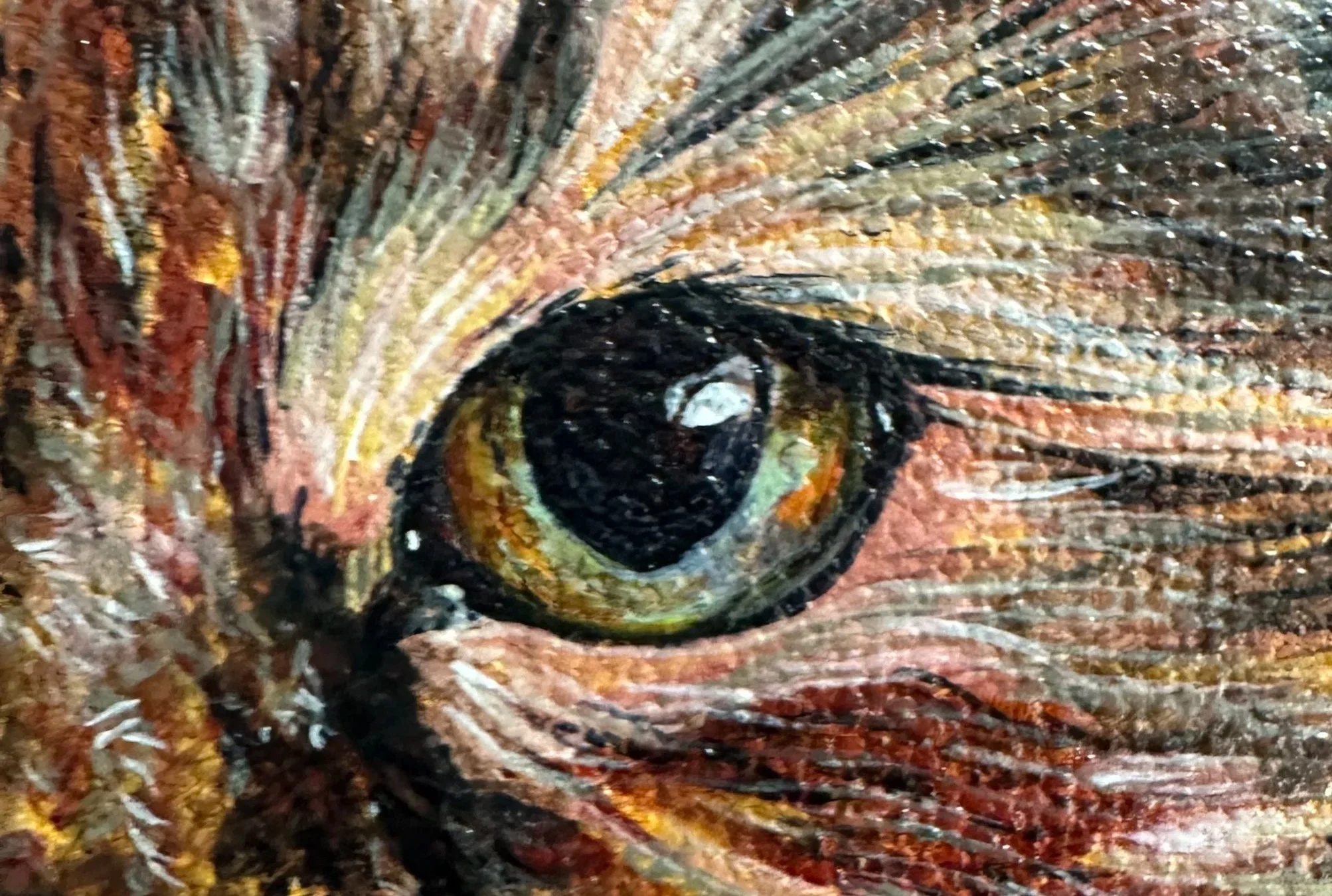 Detail of Les Chats Reposes (2023). 16 x 26 in. Acrylic on canvas.